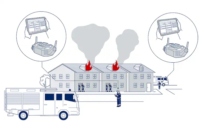 Statt auf vorhandene Infrastruktur angewiesen zu sein, errichtet FireGround ein geschlossenes, eigenständiges Einsatznetz. Es arbeitet unabhängig von Mobilfunk, WLAN oder externer Stromversorgung und bleibt damit selbst in Funklöchern, Industrieanlagen, weitläufigen Arealen oder unter Tage verlässlich. Diese Autarkie reduziert Störungen, entlastet den Sprechfunk und sorgt dafür, dass kritische Informationen genau dort ankommen, wo sie gebraucht werden: